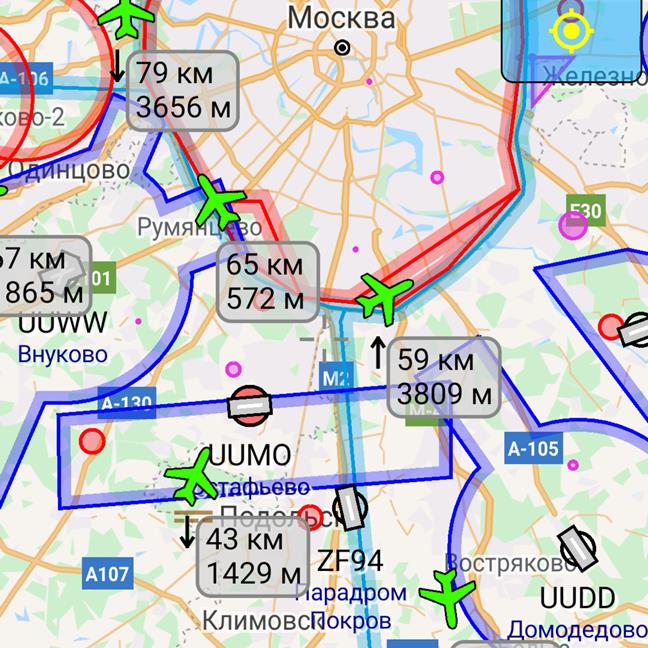 Вы видите только актуальные для вашего текущего профиля полета Воздушные Пространства и зоны